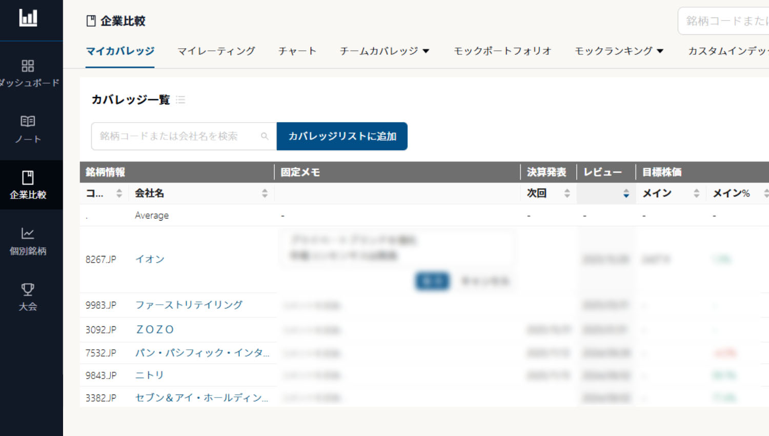 - スタンダード:多くの銘柄を広く浅くカバーしたい方向け。カバレッジテーブルで最新情報を整理できます。